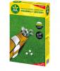 Antes de avanzar tenemos que tener preparado abono, semillas y un recebo. Primero usaremos el abono de implantación y volveremos a utilizar el rastrillo para mezclarlo con la tierra.