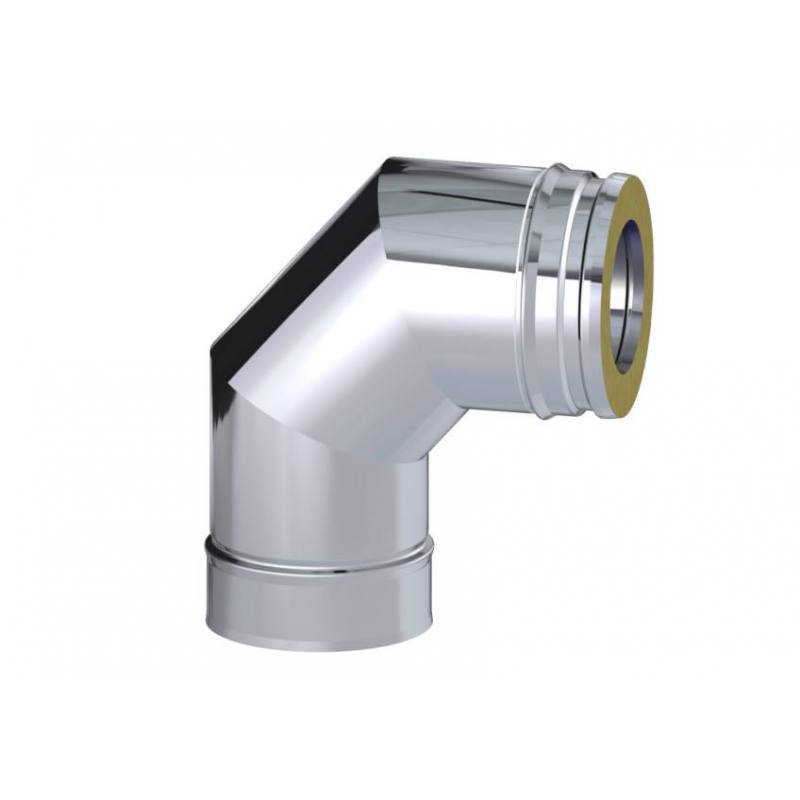 Codo de 90º de acero inoxidable Aisi 316L-304 para instalaciones de salida de humos derivado de chimeneas de pellets.