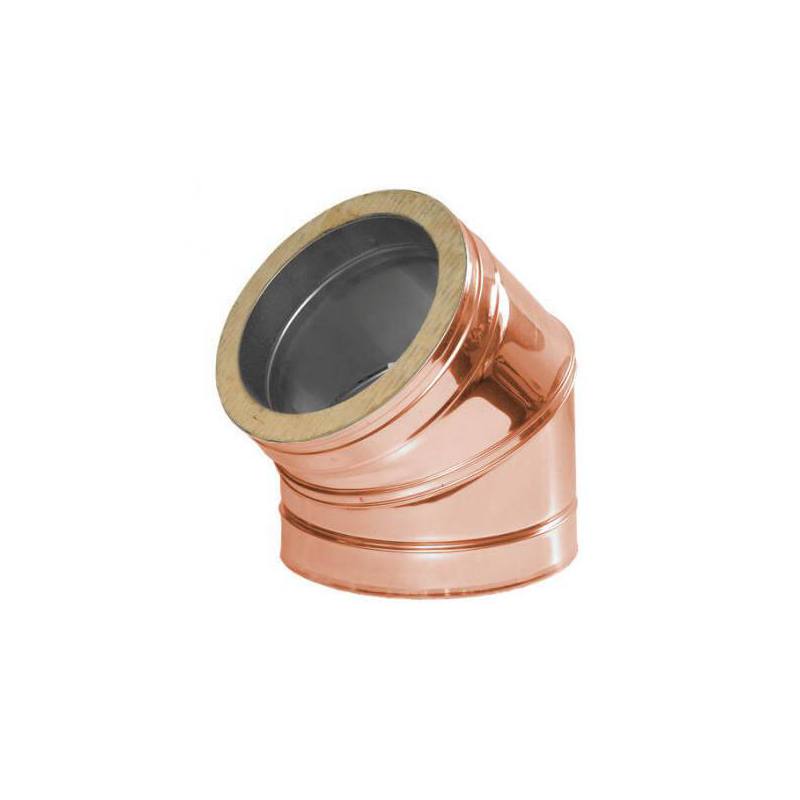 Codo de 45 grados Dinak. Interior fabricado en Aisi 316L de acero inoxidable y exterior hecho de cobre para mayor resistencia a la corrosión y a la oxidación.