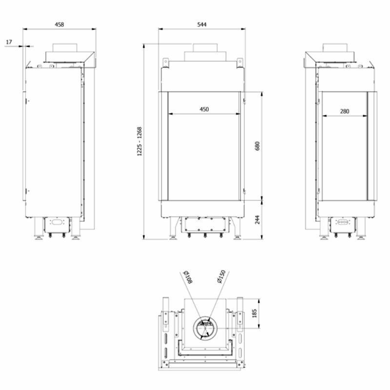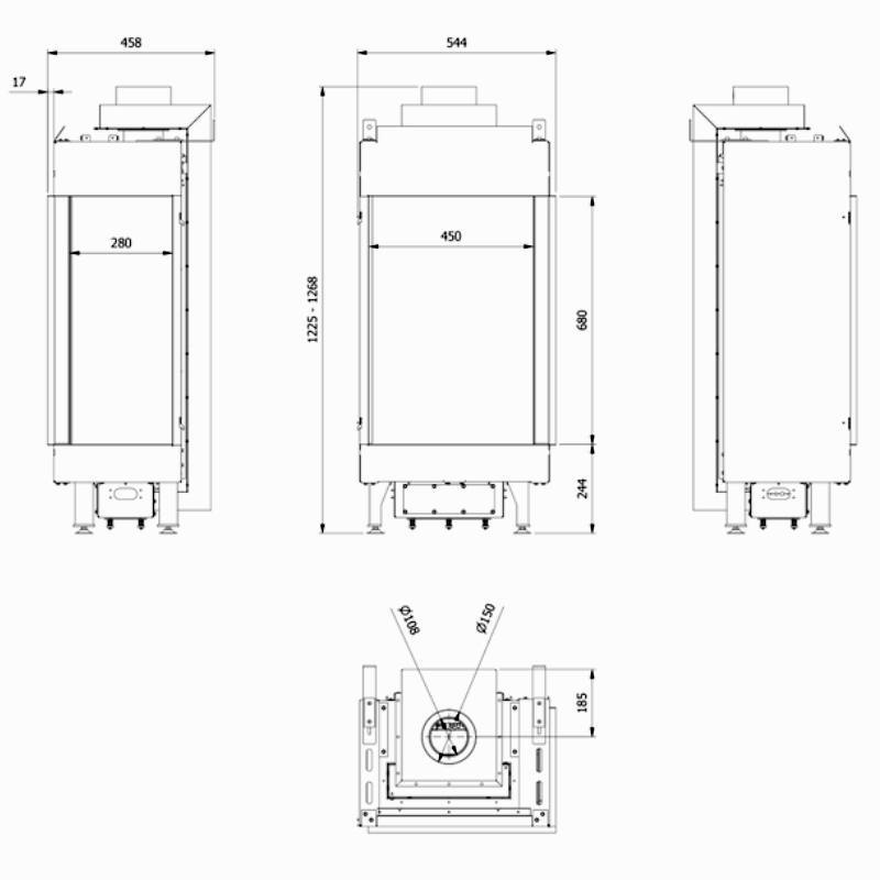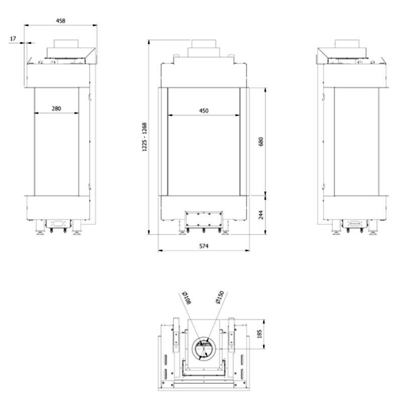 Disponemos de gran variedad de modelos para esta chimenea: con cristal plano frontal, derecho, izquierdo o ambos.