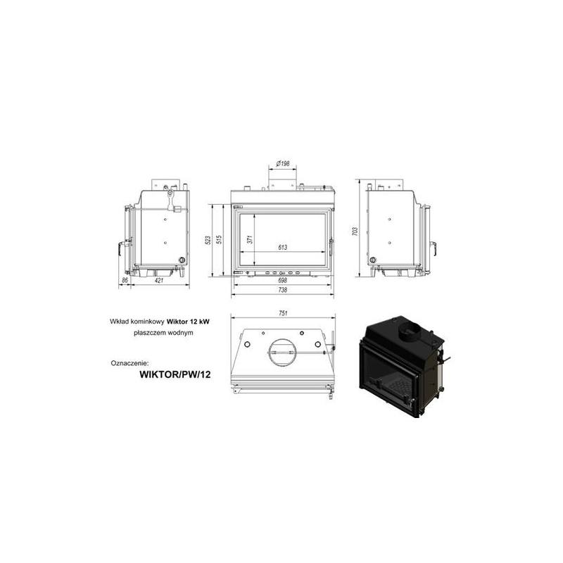La chimenea calefactora Wiktor 12 Kw es una chimenea insertable de leña, idónea para la producción de agua caliente en sistemas de calefacción de viviendas.