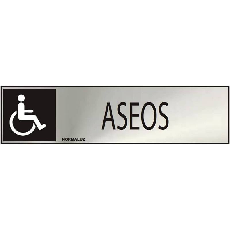Señal cartel informativo con texto e icono de aseo para minusválidos, placa inoxidable y adhesivo de 5 x 20 centímetros.
