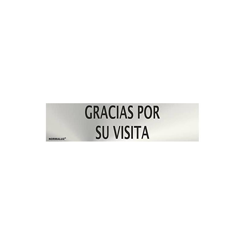 Señal adhesiva en acabado metalizado con mensaje "Gracias por su visita", formato horizontal de 5 x 20 centímetros.