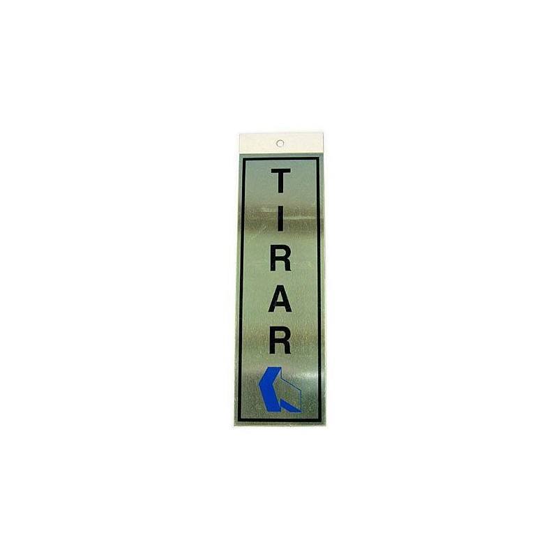 Señal realizada en latón con colores dorado y negro, con texto y flecha indicadora para Aseos. Formato horizontal de 180 x 60 milímetros.