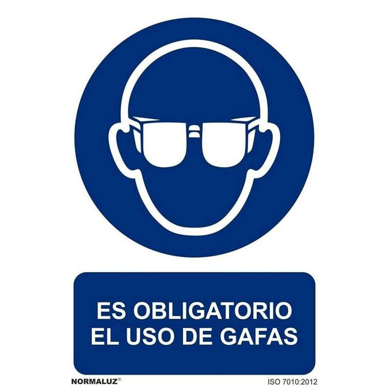 Señalización de vinilo adhesivo con icono y mensaje "Uso obligatorio de gas" en formato vertical de 20 x 30 centímetros. Colores azul y blanco.