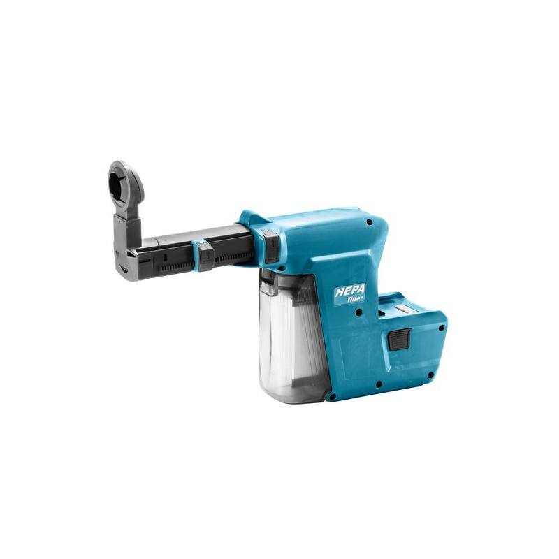 Con el colector de polvo DX02 adaptable al martillo Makita bhr243rfe se consigue aspirar el polvo del taladrado y almacenarlo en un depósito interno de 0,3 litros de capacidad con filtro Hepa de alta eficiencia.