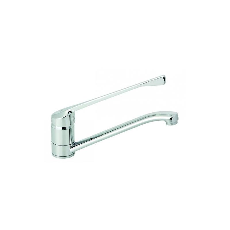 Grifo monomando Genebre 61200 21 45 66 de colocación sobre encimera con palanca medical. Maneta de accionamiento extralarga fabricada en Zamak.