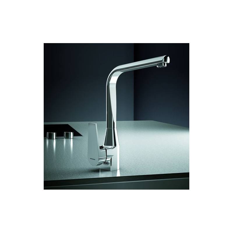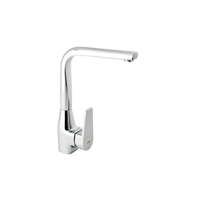 Grifo monomando para fregadero de la gama Klip de Genebre con cuerpo fabricado en latón y acabado cromado. Destaca su elegante diseño acorde a las tendencias más actuales.