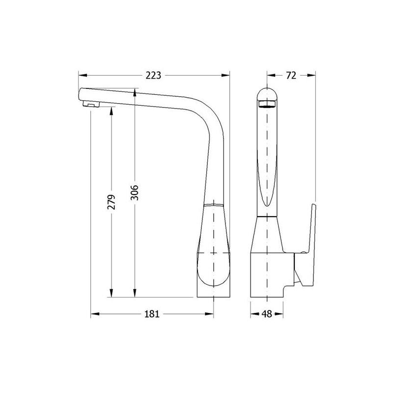 El caño alto del grifo Klip dispone de una altura libre desde la encimera al atomizador de 279 milímetros permitiendo un trabajo cómodo en el fregadero sin que este sea un estorbo. El atomizador es antical por lo que se mantendrá libre de atascos por más tiempo.