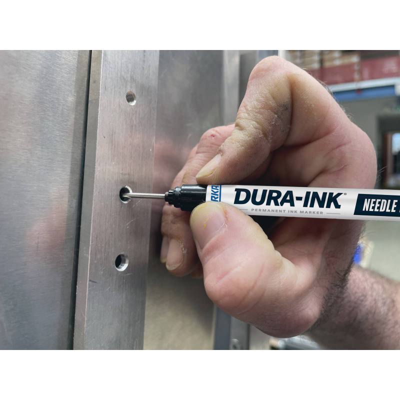 Rotulador con punta micro extendida Dura Ink en color rojo, diseñada para el marcaje a través de orificios o zonas de difícil acceso.