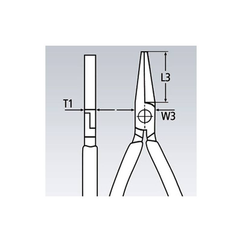 Alicate de bocas planas para un cómodo trabajo con objetos planos como terminales, chapas, lengüetas de metal, etc.