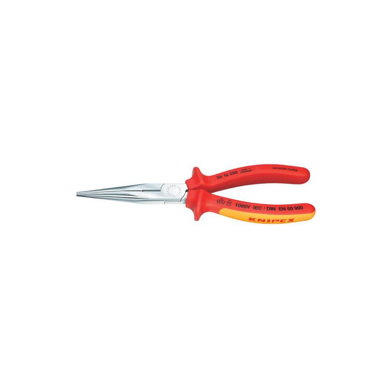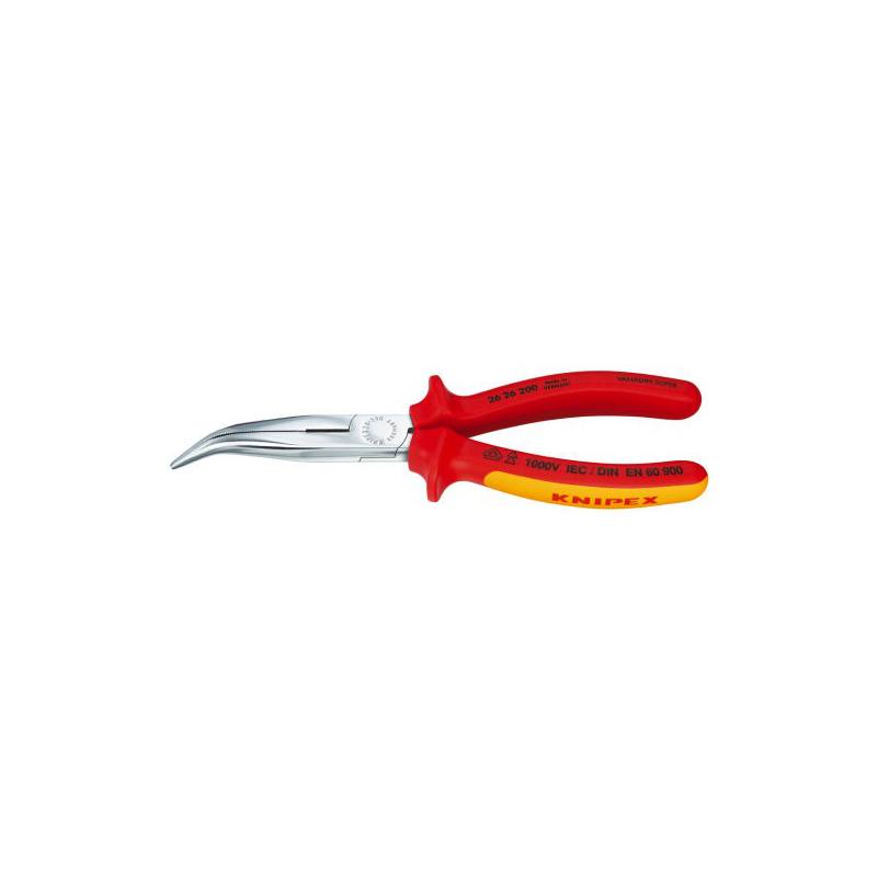 El alicate Knipex 26 26 200 dispone de unas puntas de gran precisión y resistencia, ideales para operaciones de riesgo eléctrico a nivel profesional. Sus bocas de gran longitud y cuerpo redondeado facilitan un trabajo cómodo y preciso gracias al interior de sus bocas con superficie rayada que proveen de un agarre extra.