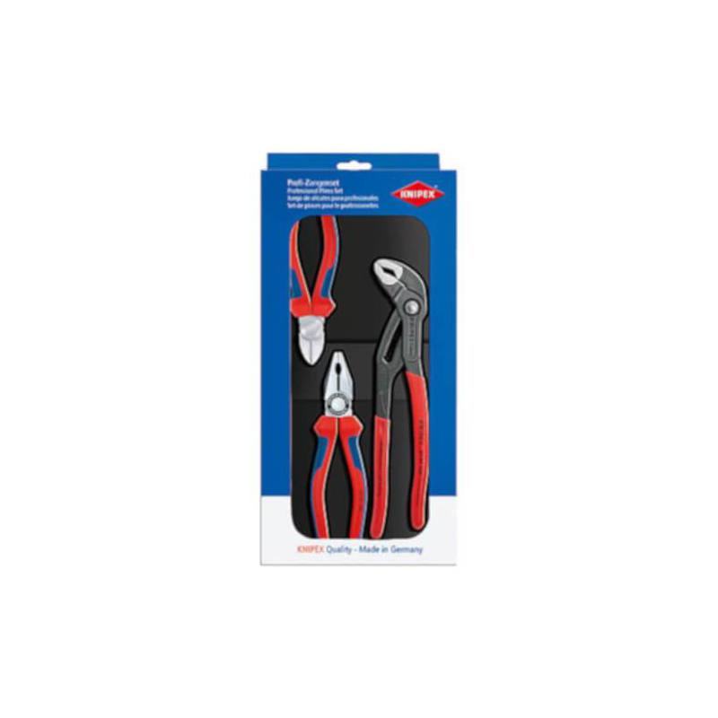 El set de alicates Knipex 002009V01 aporta al trabajador una combinación de tres alicates indispensables en la mayoría de sectores de trabajo.