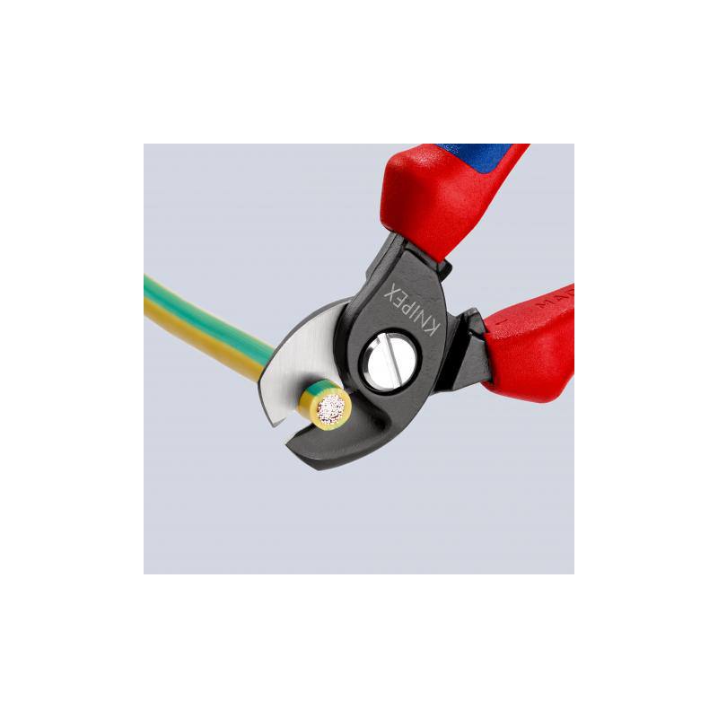Alicate para cables de aluminio y cobre con anilla de seguridad de 165 mm. No apto para cables de acero ni conductores de cobre trenzado.