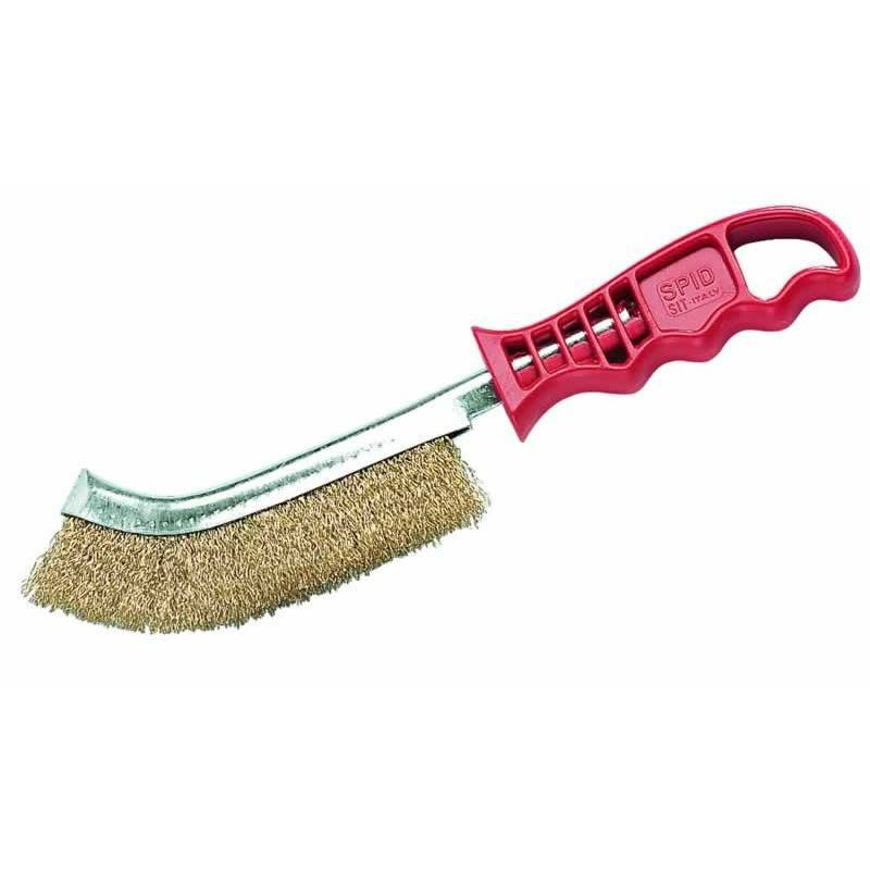 Cepillo manual Spid de acero latonado con espesor de 0.3 mm . Indicado para limpieza de superficies metálicas oxidadas, soldaduras, barnices, etc.