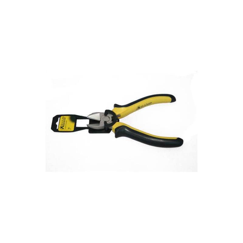 Este modelo de alicate ha sido equipado con bocas de tipo de corte diagonal .Para favorecer el uso de esta herramienta manual se ha aplicado un recubrimiento bicomponente amarillo y negro.