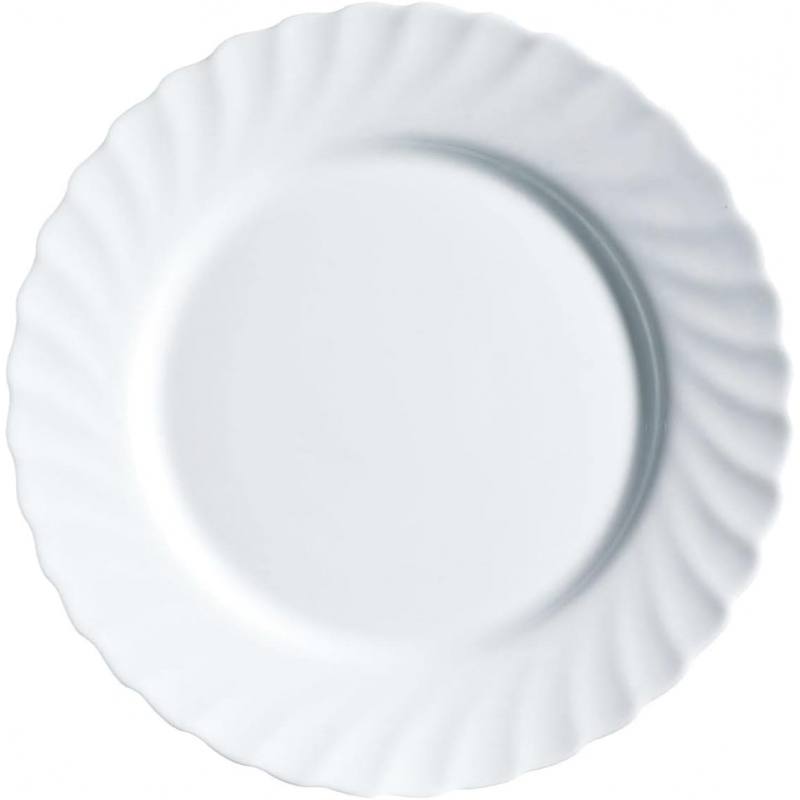 Plato llano de 24,5 cm de diámetro en color blanco, apto para lavavajillas.