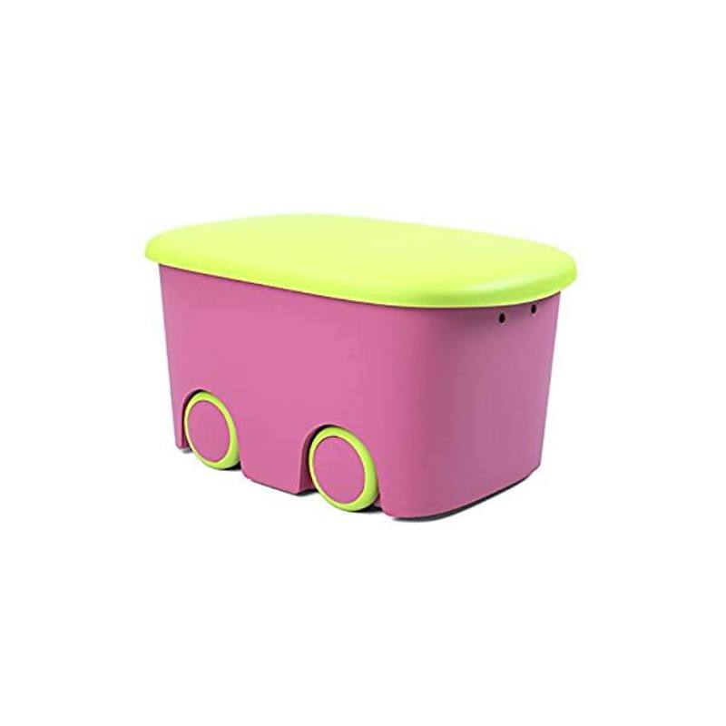 Caja multiusos niños 45 L con ruedas rosa/pistacho