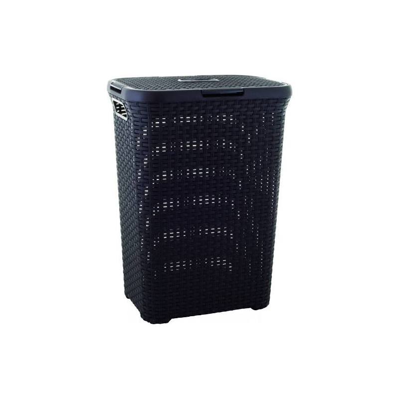 Cesta pongotodo con ergonómico y sofisticado diseño con acabado en color marrón chocolate y capacidad de 60 litros. Ofrece un aspecto natural e innovador para combinar con el estilo de cualquier hogar. Fabricado en plástico.