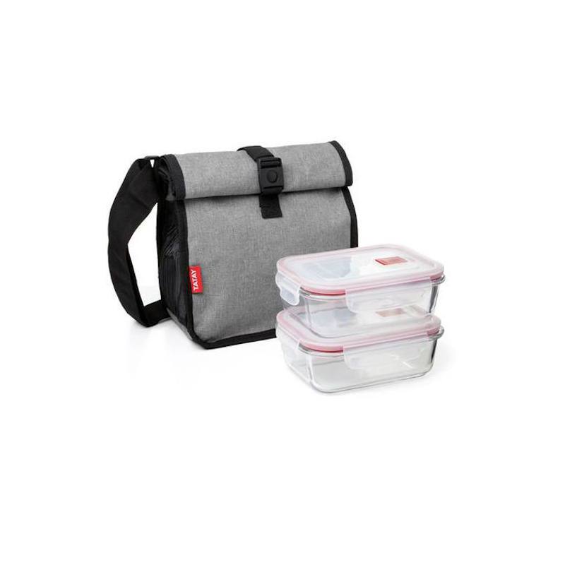 Bolsa Tatay porta alimentos gris con 2 herméticos de cristal 0,6 lt