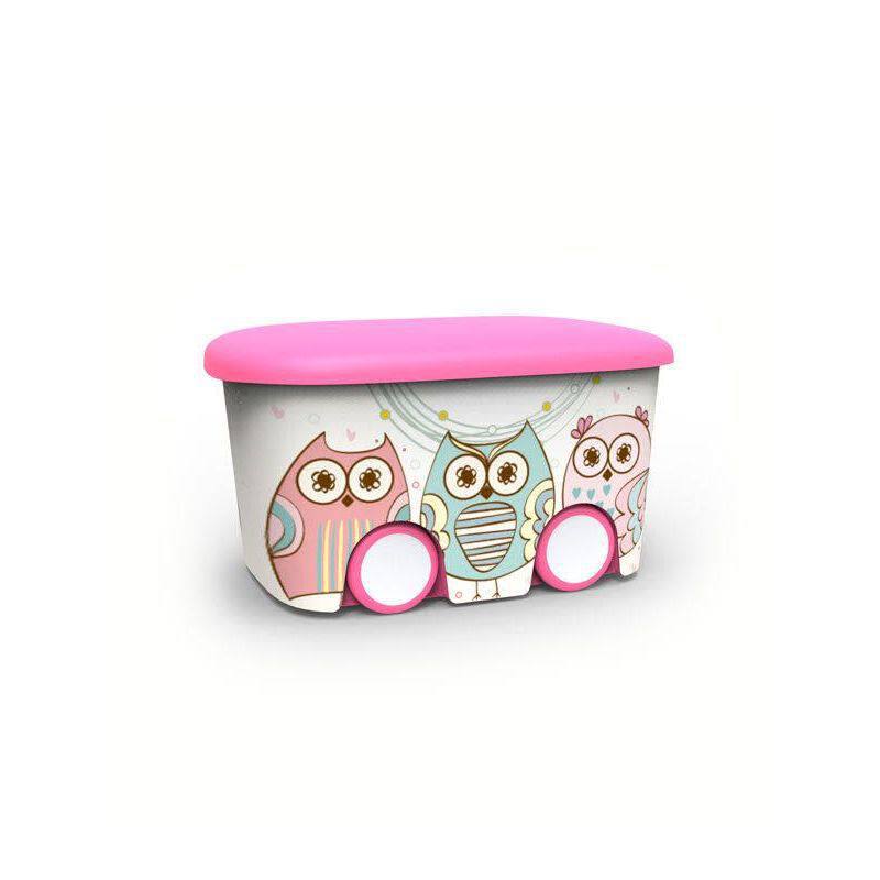 Caja infantil multiusos con ruedas y diseño de búhos. Fabricado en polipropileno.