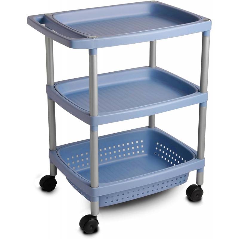 Carrito auxiliar de baño con ruedas incorporadas y mueble con 3 estantes.
