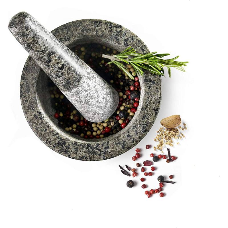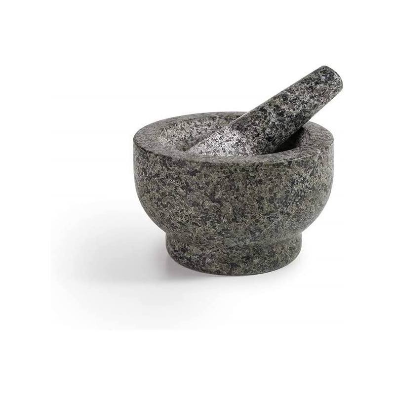 Elegante mortero de granito para moler todo tipo de alimentos en la cocina, fabricado por Ibili.