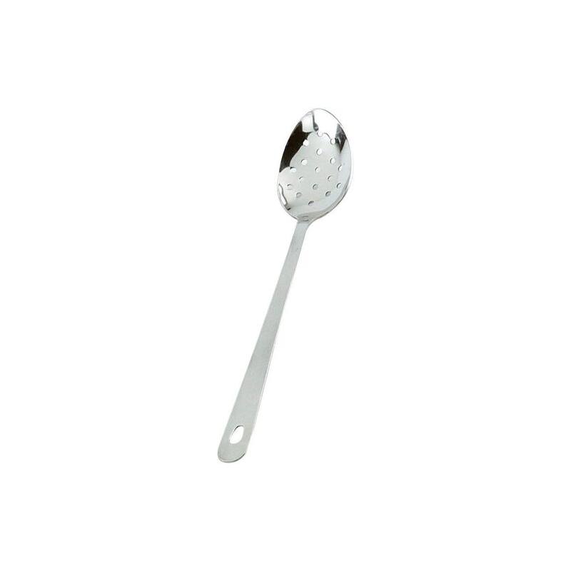 La cuchara con agujeros Ibili inox es una herramienta de cocina versátil fabricada en acero inoxidable, diseñada para escurrir líquidos y servir alimentos con precisión. Un utensilio esencial en la cocina.