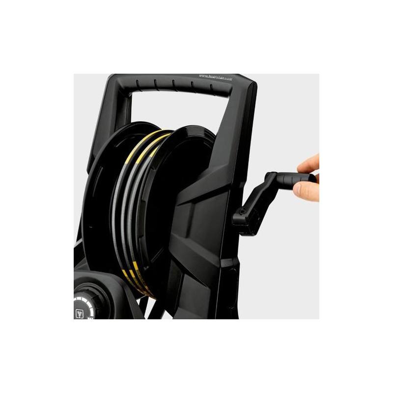 Otro de los puntos importantes que la Karcher K5 Premium Car ofrece es su tambor porta mangueras integrado en la propia máquina, y gancho para el colgado del cable de alimentación. Este sistema permite recoger la manguera en poco tiempo y tener el equipo siempre ordenado y almacenado en su hogar ocupando el mínimo espacio.