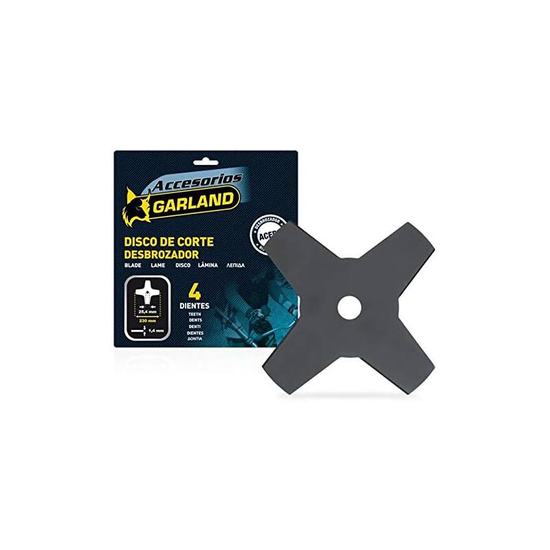 Accesorios Garland disco de corte para desbrozadora de acero con diámetro de 230 milímetros y 4 dientes.