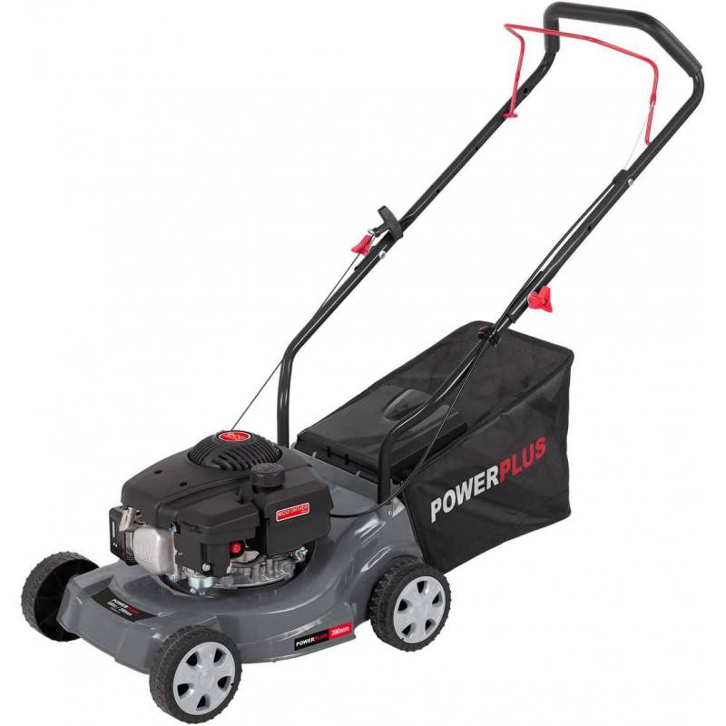 Cortacésped a gasolina 150 cc Powerplus autopropulsado, con ancho de corte de 39 centímetros.