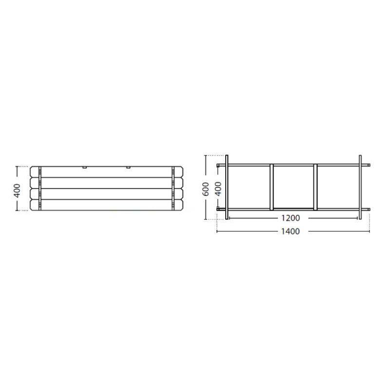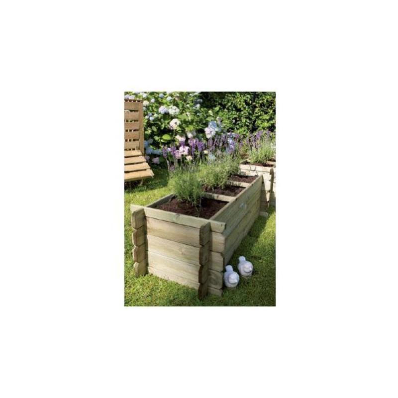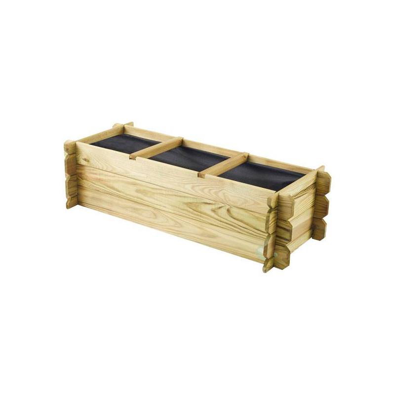 Huerto urbano de madera de pino con material geotextil. Cuenta con 3 divisiones para el cultivo de plantas y vegetales.