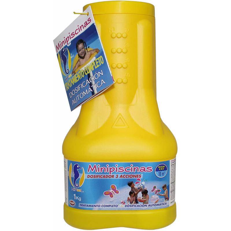 Tratamiento y dosificador triple acción diseñado para mini piscinas o piscinas pequeñas, inflables o desmontables. Tratamiento desinfectante, algicida y floculante de larga duración para asegurar un mantenimiento completo en tu piscina. Formato de 1 Kg.