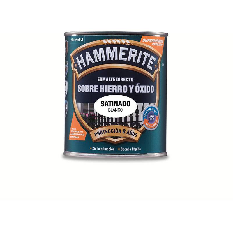 Esmalte Bruguer Hammerite con acabado satinado, disponible en varios colores, para protección frente al óxido de elementos de hierro y metal.