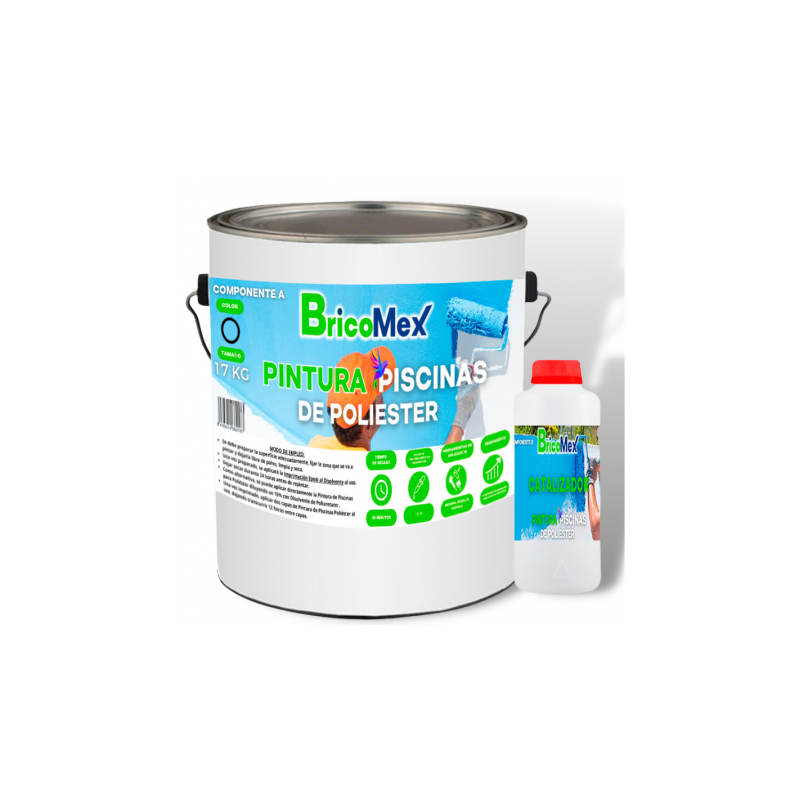 Pintura para piscinas de poliéster con dos componentes en color azul, disponible en varios tamaños. Pintura especialmente diseñada para piscinas de poliéster, resistente al agua, a los rayos UV y a los químicos necesarios para la limpieza y mantenimiento de las piscinas.