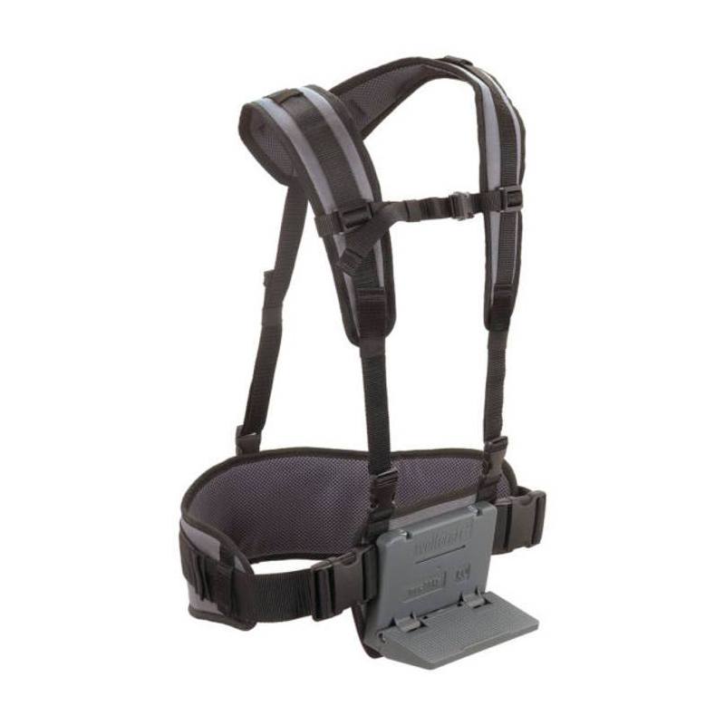 Este producto se compone de un arnés con correas y un cinturón lumbar, ambos acolchados. Este cinturón dispone de correas ajustables para poder ser ajustado a cualquier usuario. Su uso permite una óptima distribución del peso reduciendo el esfuerzo realizado por los brazos en un 75%.