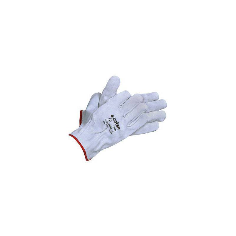 Guante de piel serraje color gris Cofan. La bolsa contiene 12 unidades.