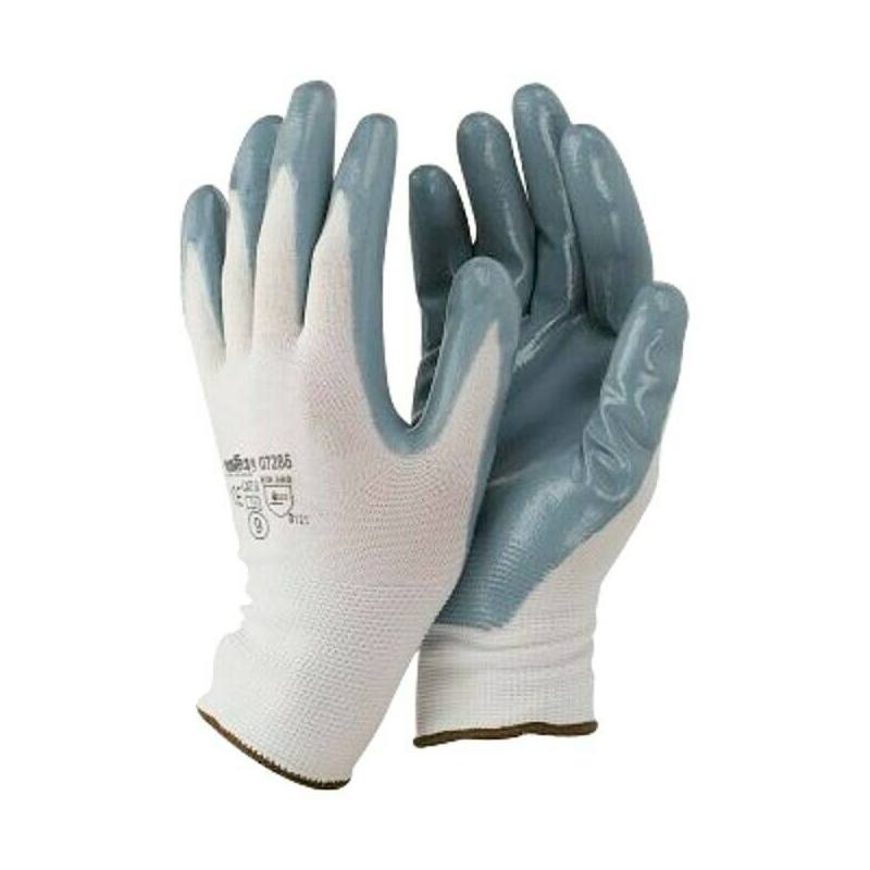 Guantes de nylon blanco y gris. Precio de 11,69 € para 12 pares.