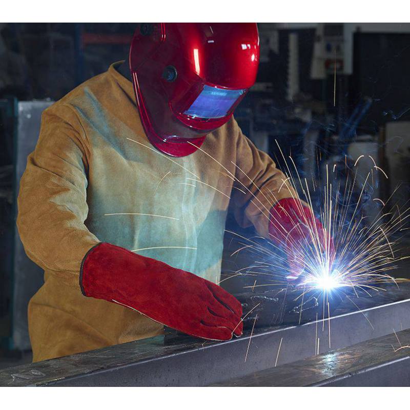Guante de piel serraje para soldadores, forrado total, cosido con hilo de para-aramida.