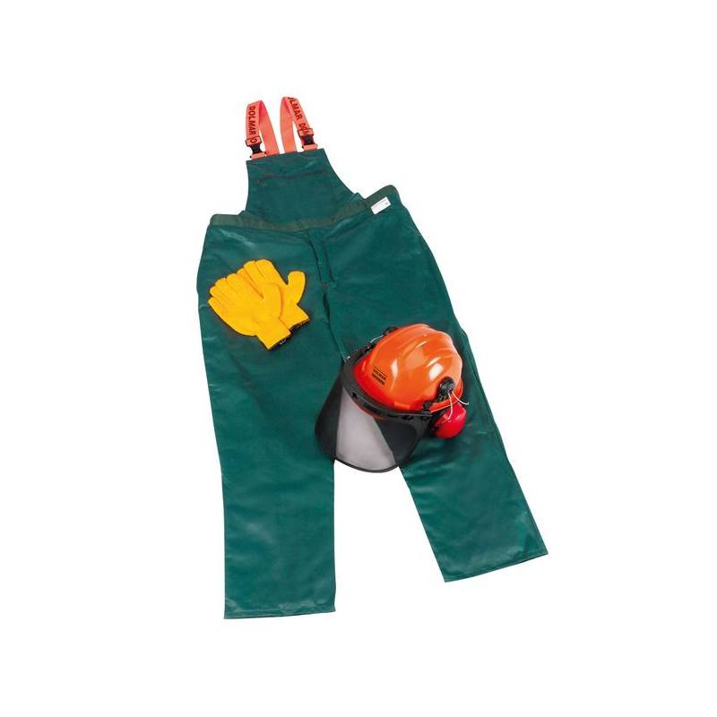 Pantalones anticorte forestales, de acuerdo con la normativa DIN EN 381.Casco protector con visor de protección facial.Auriculares protectores, de acuerdo con la normativa de seguridad DIN EN 397.Guantes protectores para cadenas de motosierras.