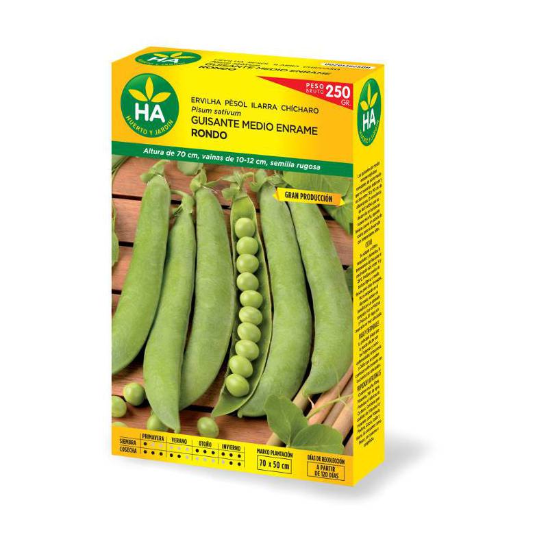 Semillas de guisante tipo Rondo en caja de 250 gramos: Un paquete conveniente para cultivar guisantes de alta calidad en tu propio jardín, garantizando frescura y sabor en cada cosecha.