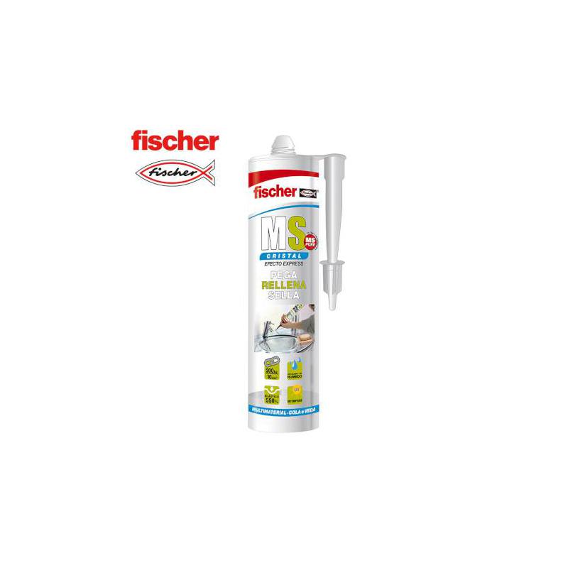 Ms sellante adhesivo cristal fischer 290ml pega sella rellena elástico 550% 200kg/10cm2 aplicable en húmedo intemperie.