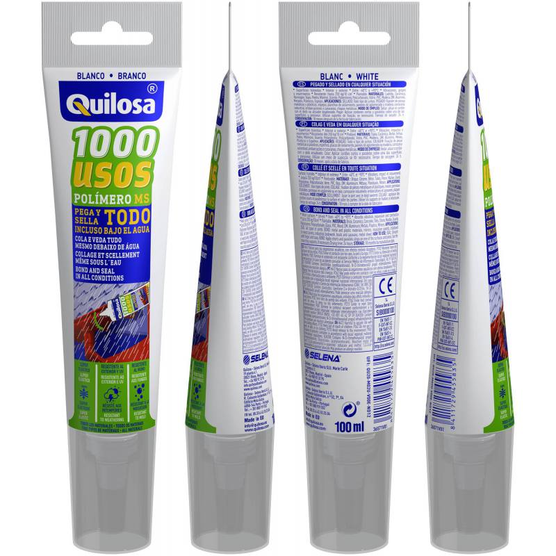 Sellador Quilosa MS 1000 usos color blanco, pega y sella todo tipo de superficies, tanto interior como exterior, incluso bajo el agua.
