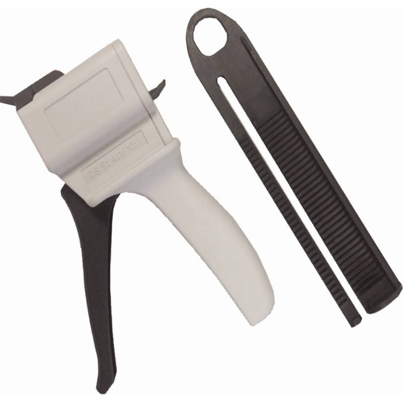 Pistola de aplicación manual específica para cartuchos bicomponentes.