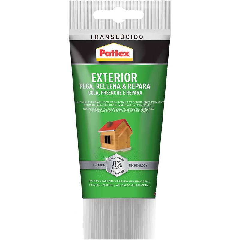 Silicona Pattex para exterior color translúcido, resistente a todo tipo de condiciones climáticas.